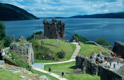 Urquhart Castle mit Blick auf das nordöstliche Loch Ness