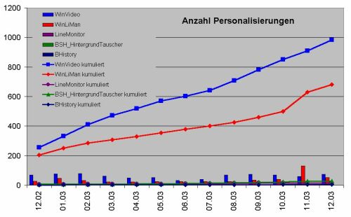 Seit Juli 2002 gibt es nun in unseren Programmen nach 5 Benutzungen an 5 oder mehr Tagen jedes Mal einen nervenden Aufruf zur Personalisierung. Wenn Sie mir also eine EMail schicken, erhalten Sie dafür kostenlos eine Personalisierungs-Key-Datei, die den Aufruf abschaltet.